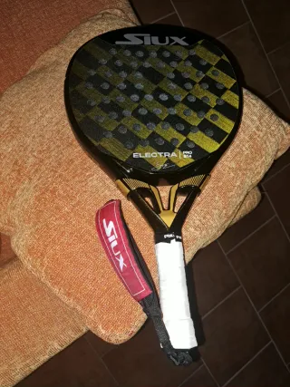 No escucho ofertas inferiores, NO REGATEO.Pala de pádel Siux Electra ST4 con un diseño llamativo Se vende por lesión, TIENE 3 PARTIDOS - Superficie con acabado rugoso. - Diseño a cuadros en negro y dorado.