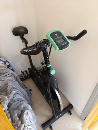 Bicicleta estática Cecotec en perfecto estado, prácticamente sin uso. Ideal para entrenar en casa. - Diseño moderno en color negro y verde. - Pantalla digital para seguimiento de ejercicio. Ahora mismo no funciona la pantalla creo q es la pila