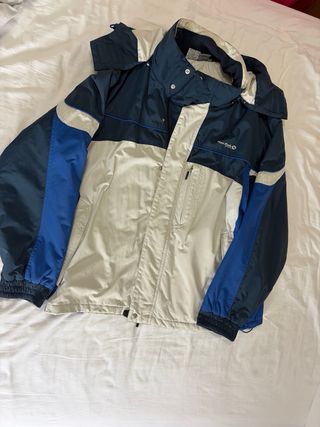Conjunto de esquí para hombre de la marca Neak Peak, ideal para disfrutar de la montaña. Talla XL. - Chaqueta azul y beige con detalles en blanco. - Pantalón azul. - Diseño deportivo y funcional.