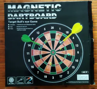Juego de dardos magnéticos con un diseño divertido. - Diana de dardos con números. - Dos colores de dardos magnéticos incluidos (3 rojos y 3 verdes). - Diseño inspirado en Dinamarca.