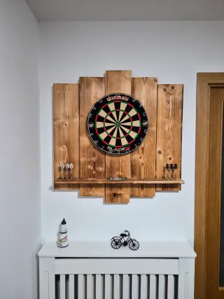Diana de dardos con un diseño clásico y elegante. Los dardos no vienen con la diana y tampoco el cable.
