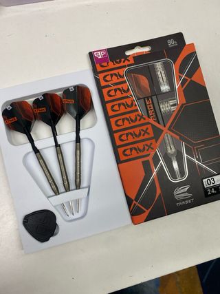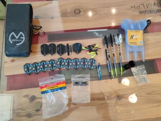 Lote de accesorios para dardos, ideal para renovar tu equipo o probar nuevos componentes. - Plumas de dardos de diferentes diseños y marcas como Ruthless. - Puntas de dardos. - Ejes para dardos. - Accesorios de la marca Unicorn Darts y Bulls. - Incluye un juego de plumas System Flight Tuning con diseño de águila y otro con diseño de diana. - Plumas Gripper II de color rojo.