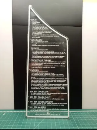 Máquina de dardos electrónica marca Cricket, ideal para el entretenimiento en casa. Cuenta con un diseño clásico de madera y pantalla digital. - Panel de control con marcador digital. - Diseño de madera. - Juego de dardos Cricket. Operativa y funcionando