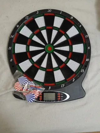 Diana electrónica de dardos con pantalla de juegos integrada. Incluye un set de dardos sin punta. - Pantalla digital para puntuación. - Diseño clásico de diana de dardos.