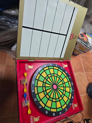 Máquina de dardos Bifuca con marcador electrónico. Funciona todo aunque hay que limpiarla. - Marcador electrónico para puntuación. - Diseño clásico de diana de dardos. - Incluye panel de control con botones.