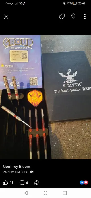 Conjunto de dardos profesionales Michael Van Gerwen. - Funda de dardos negra. - Varios juegos de plumas de dardos. - Dardos de metal con puntas. - Accesorios para dardos.