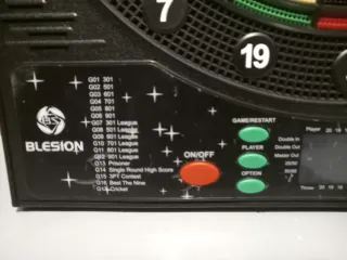 Tablero de dardos electrónico Blesion con números y segmentos de puntuación. - Pantalla digital para seguimiento de puntuación. - Botones de control en la parte inferior. He comprado en Amazon por 80