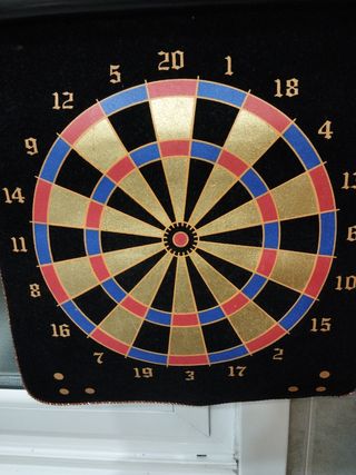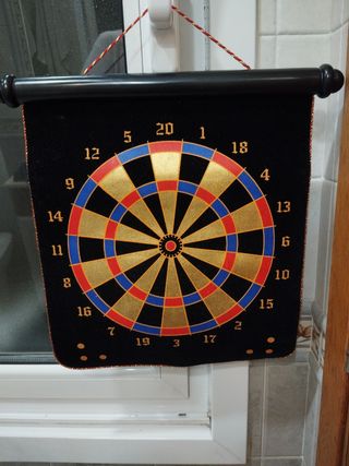 Tabla de dardos magnética en perfecto estado. Ideal para jugar en casa. - Incluye 1 tablero magnético. - Diseño clásico y elegante. - Fácil de guardar y transportar.