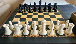 Vendo set estilo Staunton único, mejorado a mano. Gran tamaño y solidez. 🛠️ Modificación Pro: He insertado una chapa de metal en la base de cada pieza y colocado fieltro nuevo. ✅ Ventaja: Mayor peso real, estabilidad total y el fieltro nunca se hundirá (defecto común en piezas estándar). 📏 Tamaño: Rey de 10 cm. Ideales tablero 55x55. ⚠️ OJO: Precio solo por las piezas. Sin tablero ni caja original (se envían sueltas pero muy protegidas 📦). ¡Piezas de batalla indestructibles y con tacto sólido!