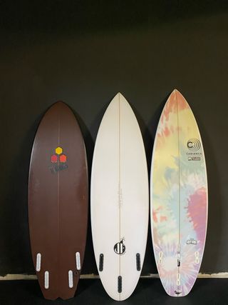 Vendo estas 3 tablas de surf con muy pocos baños. Practicamente nuevas. Al Merrick Bobby Quad 5’6 x 19 3/4 x 2 1/2 x 30’3l. Precio 400€ Jean Fernandes 5’9 x 18 7/8 x 2 1/2 x 29’3l . Precio 250€ Cabianca TheGame 5’10 x 19 x 2 1/2 x 28’6l . Precio 250€