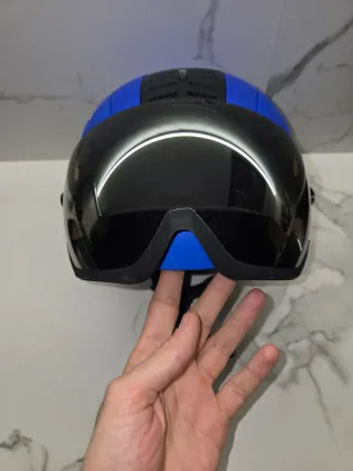 Casco de esquí NTX con visor integrado. Dos marcas que no afectan ni al uso ni a la visión. Ver fotos - Color azul y negro. - Visor de espejo.