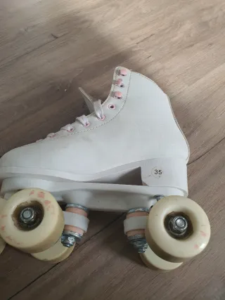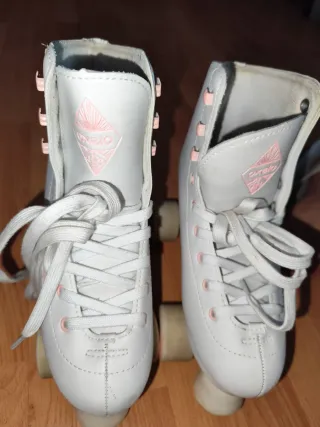 Patines blancos de la marca SCHOOL. Talla 38 - Diseño alto tipo bota. - Cordones blancos. - Ruedas de patinaje.