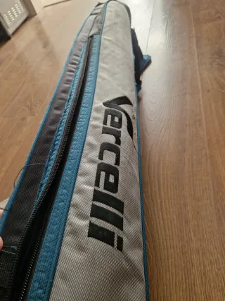 Funda para cañas de pescar de la marca Vercelli. Diseñada para proteger tu equipo. - Color gris y azul. - Cierre de cremallera.