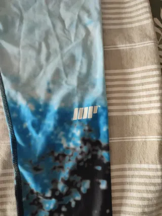 Leggings deportivos con un diseño vibrante que evoca el agua y la naturaleza. - Estampado abstracto en tonos azules y negros. - Cintura elástica para mayor comodidad. - Diseño largo hasta el tobillo.