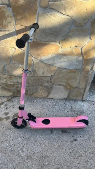Patinete infantil de color rosa, perfecto para los más pequeños. - Manillar ajustable. - Ruedas resistentes. - Plataforma antideslizante. Falta cargador por eso el precio, pero funciona igual sin bateria