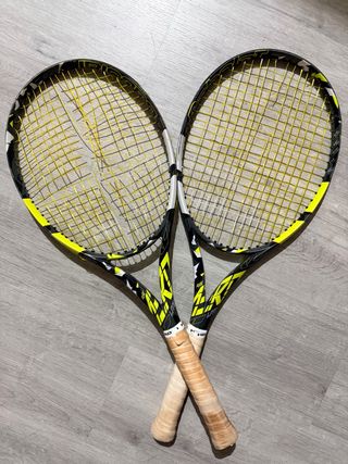 Raqueta de tenis Babolat Pure Aero Lite con un peso de 270 gramos. Diseñada para un juego ágil y potente. - Marco con diseño aerodinámico. - Cordaje amarillo. - Empuñadura de cuero. LAS 2 unidades 150€. la Unidad 85€.