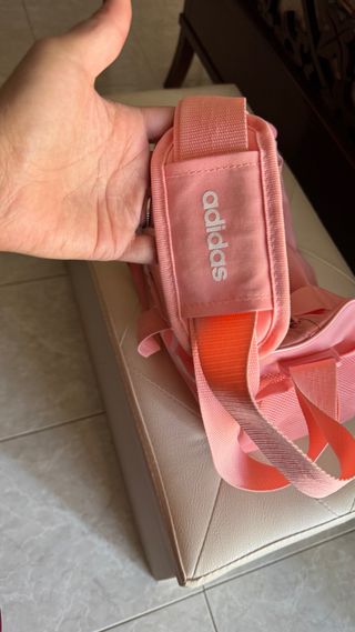 Bolsa de deporte Adidas en un vibrante rosa, perfecta para el gimnasio o para viajes cortos. - Logotipo de Adidas en blanco en contraste. - Correa de hombro ajustable. - Asas resistentes.