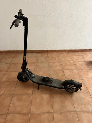 Patinete eléctrico en buen estado, ideal para desplazamientos urbanos. Es plegable para facilitar su transporte y almacenamiento. - Manillar ajustable. - Rueda delantera y trasera. - Freno de pie.
