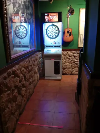 Diana electrónica Kursaal con tablero de juego. - Marco de madera. - Con Monedero. - Pantalla digital para puntuación. - 16 Juegos Funciona