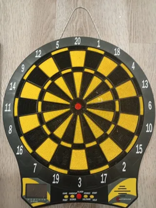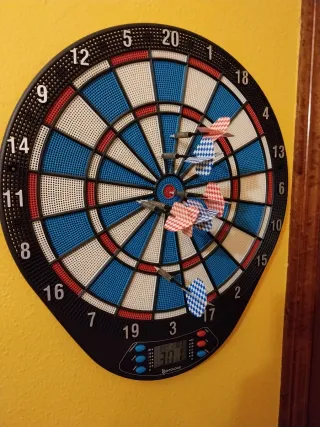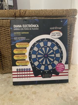 Diana electrónica de la marca Talking, ideal para jugar en casa. Incluye marcador digital. - Pantalla digital para puntuación. - Múltiples juegos disponibles. - Diseño clásico de diana. - diferentes juegos ,criket ,501 ,reloj etc.... Se puede ver sin compromiso está como nueva apenas uso .un saludo