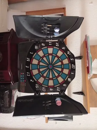 Como nueva, usada pocas veces, aún conserva el plástico protector de la pantalla. Los dardos no son de muy buena calidad, son los que venían con la diana. Del decathlon, me costó 70€