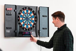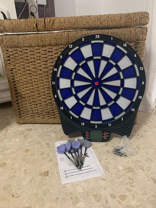 Diana electrónica para jugar a los dardos. Incluye accesorios para empezar a jugar. - Diana electrónica. - 6 dardos. - 24 puntas blandas de repuesto.