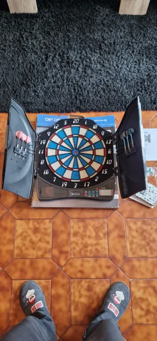 Diana electrónica NUEVA (solo le falta la caja)con pantalla digital, cuatro marcadores, sonido, enchufe para la red, juego de 6 dardos e instrucciones. Posibilidad de montaje sin pared, con patas que se incluyen NO SE ENVÍA,;ojo y repito no se envía! A recoger en Colmenar Viejo posibilidad Tres Cantos sí cuadramos. 38€, posibilidad de hacer precios si se coge algo más del perfil. Ver prestigio de vendedor.