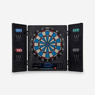 NUEVA SIN ESTRENAR Marca OneConcept . Diana electrónica de dardos, ideal para disfrutar en casa. Su diseño moderno y elegante se adapta a cualquier espacio. Oneconcept Masterdarter - Diana automática, Diana electrónica, Dardo electrónico, Juego electrónico, 38 Juegos Distintos, hasta 16 Jugadores, LED, 12 Dardos Interruptor para encender/apagar en el panel frontal Incluye 12 dardos y 24 puntas de repuesto Ideal para hasta 16 jugadores Oponente de la computadora en 5 niveles de dificultad para un solo jugador Puertas de protección contra el polvo y daños Sujetador de dardos en la parte interna de las puertas