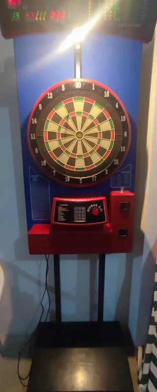 -diana en buen estado!!! funciona perfectamente -Para ocho jugadores -Funciona con monedero - Marcador digital para puntuación. - Dispongo de peana metálica -Se puede adaptar para jugar online - se encuentra en un pueblo de cuenca criket,301,501,bifuca,bar,dardos,bifuca.......