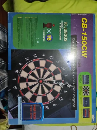 Diana electrónica de dardos CB-150CW con armario integrado. A estrenar. Contenido de la caja completo, incluye pilas y adaptador de corriente - Modelo: CB-150CW - Juegos: 30 - Variaciones: 126 - Jugadores: Hasta 16 - Incluye armario integrado