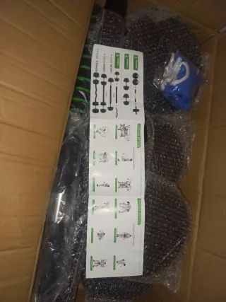 Set de mancuernas y discos de pesas para entrenamiento en casa. - 3 barras de mancuerna. - Discos de diferentes pesos. - Cierres para las barras Tres mancuernas, 2 con sus agarres En total 23 kilos repartidos en discos de 2 kg y 1 kg Regalo barra de muelle para biceps
