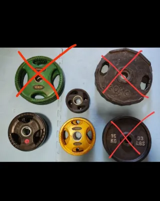 Discos de gimnasio y mancuernas a 0.50 céntimos