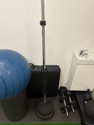 Vendo conjunto de musculación ideal para entrenar en casa. Material en buen estado, sólido y listo para usar. Incluye: ✔ Banco de pesas con soportes para barra ✔ Barra larga para press banca y ejercicios varios ✔ 2 barras de mancuernas con seguros ✔ Discos: 2 x 10 kg 2 x 5 kg 2 x 2 kg 2 x 1 kg 👉 Más de 35 kg en discos, ampliables con más peso. Perfecto para entrenar pecho, brazos, hombros y core sin necesidad de gimnasio. Equipo estable, práctico y ocupa poco espacio. Se vende por no usar.