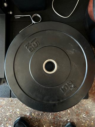 Se venden discos de pesas para gimnasio. - Dos discos de 25 kg. - Un disco de 10 kg. - Diámetro interior estándar para barras.
