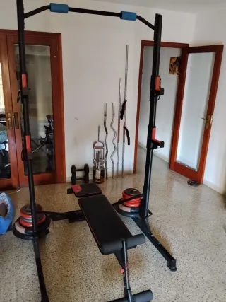 Se vende gimnasio completo compacto. Todo lo siguiente incluido por 999€ (en cada línea indico valor real (1500€): + Rack CORENGTH 500 199€ + Transporte hasta tu casa 100€ + Barra 155cm 28mm 30€ + Barra 120cm 28mm 30€ + 3 barras mancuernas 45€ + Barra Z 120cm 28mm 30€ + Discos caucho 28mm: 2 de 20 kg, 2 de 10 kg, 4 de 5 kg, 8 de 2.5 kg, 2 de 1.25 kg. Valor 380€ + 6 bloqueadores discos 28mm 15€ + Soporte discos 70€ + Banco Corength 900 140€ + Protector cuello barra 16€ + 2 Reposa barra rack extra 30€ + Pesas rusas: 8kg, 12kg, 16kg, 20kg, 24kg y Soporte para Kettlebells, valor 329€ + 12 discos acero 1kg 36€ + 2 discos 2kg 10€