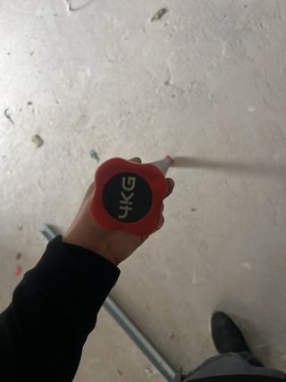 Set de mancuernas ajustables de color rojo con barra de hombro. Discos de 2,5kg completan hasta 40kg. - Cada disco tiene un peso de 2.5 kg. - Incluye barra de agarre con acolchado. Recoger en zona Piramides.