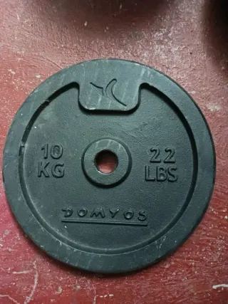 Disco de peso de 10 kg para equipamiento de gimnasio. - Material: Hierro fundido. - Peso: 10 kg. - Marca: Domyos. precio por unidad