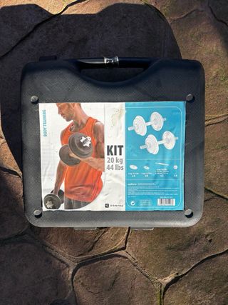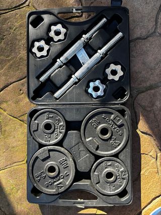 Maletín con dos mancuernas de 10 kg cada una, ideal para entrenar en casa. Incluye barras y discos. - Cuatro cierres roscados ✅Más art. deportivos en mi perfil. ✅Monta tu gym en casa y ponte fuerte, ganando en tiempo y bienestar. Crea tu lote , pack descuento de hasta el 60 % de su precio original. dominadas amazon mma Multiestacion Banco de pesas pesa rusa Press banca militar Fitness gym gimnasio musculación estación entreno bíceps tríceps dips dorsal hombros discos mancuernas barra z rack Romana rutina rural oposiciones físicas mosso d’Esquadra bombero guardia urbana policía local culturismo halterofilia aerobic yoga calisteni