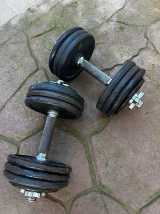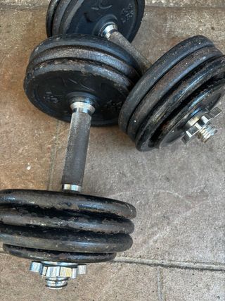 Se vende pareja de mancuernas de 16 kg cada una. - Peso total: 32 kg. - Ideales para entrenamiento de fuerza ajustable. ✅Más art. deportivos en mi perfil. ✅Monta tu gym en casa y ponte fuerte, ganando en tiempo y bienestar. Crea tu lote , pack descuento de hasta el 60 % de su precio original. dominadas amazon mma Multiestacion Banco de pesas pesa rusa Press banca militar Fitness gym gimnasio musculación estación entreno bíceps tríceps dips dorsal hombros discos mancuernas barra z rack Romana rutina rural oposiciones físicas mosso d’Esquadra bombero guardia urbana policía local culturismo halterofilia aerobic yoga calistenia