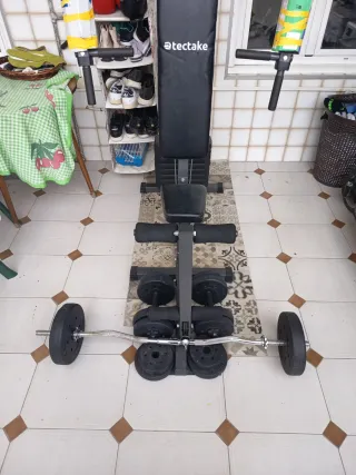 Kit Pesas 31Kg ,Barra Musculación, y mancuernas