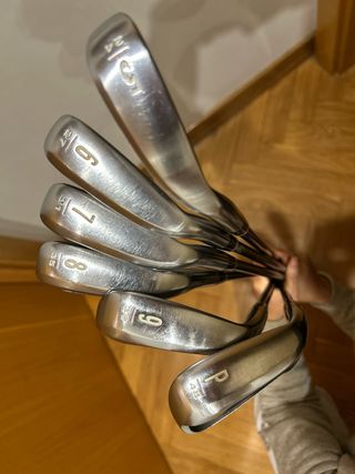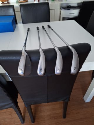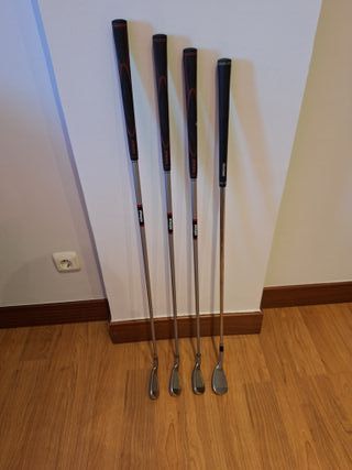 Set de hierros de golf, ideal Pych&putt. el S es de 56 grados marca Cleveland y los hierros son Strata, casi sin uso - Incluye 4 hierros: 56, 9, 7 y 5. - Ideales para mejorar tu juego.