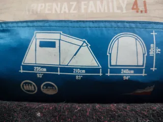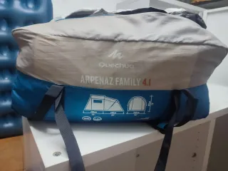 Solo usado una vez. En perfecto estado. Tienda de campaña Quechua Arpenaz Family 4.1 para cuatro personas. - Modelo: Arpenaz Family 4.1 - Capacidad: 4 personas - Marca: Quechua - Color: Azul y beige