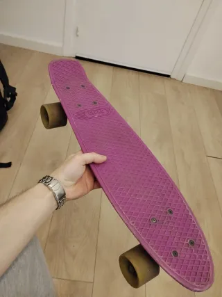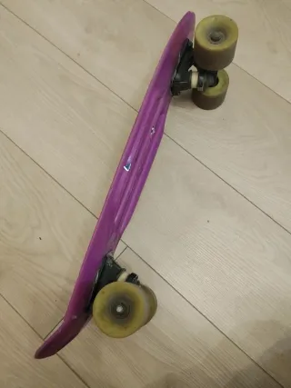 Skate pequeño estilo Penny en color morado. Ideal para desplazamientos cortos y diversión. - Tabla con superficie antideslizante. - Ruedas resistentes. - Marca Oxelo