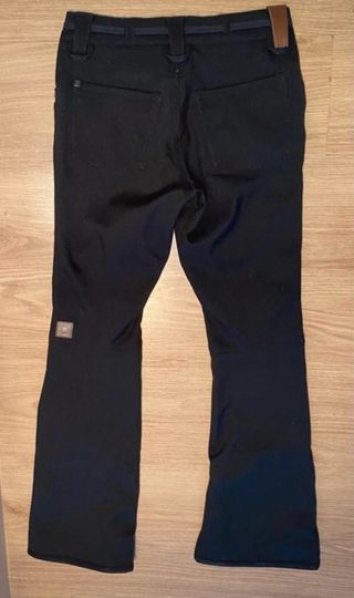 Pantalón negro de marca, con un diseño moderno y cómodo. - Color negro. - Detalle de logo en la pierna izquierda. - Cintura con trabillas y cinturón. - Bolsillos traseros.