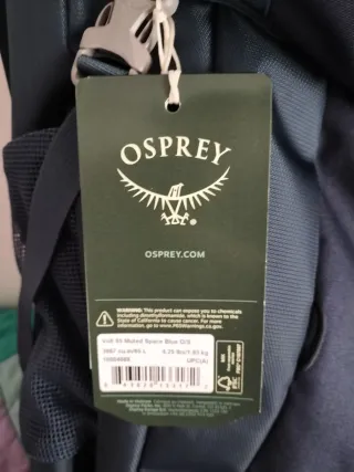 Mochila Osprey Volt de 65 litros, ideal para tus aventuras. - A estrenar. - Color azul marino y gris. - Compartimento principal espacioso. - Correas ajustables para mayor comodidad.