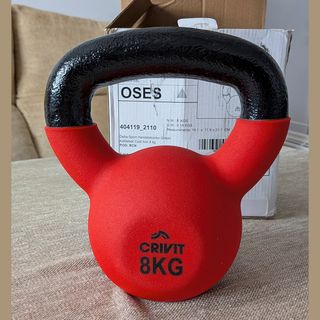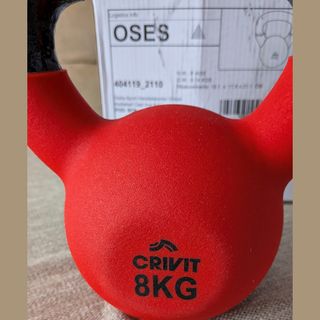Pesa rusa Kettlebell Crivit de 8 kg, ideal para entrenamientos. - Color rojo y negro. - Material: Hierro fundido con recubrimiento. - Peso: 8 kg.