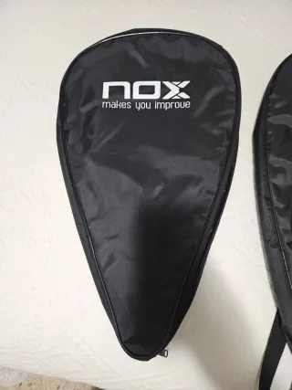 Se venden dos fundas para palas de pádel de la marca NOX. - Color negro. - Diseño con logo NOX y lema makes you improve.