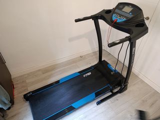 Cinta de correr Fytter en buen estado, ideal para entrenar en casa. - Pantalla digital con información de velocidad. - Botón de parada de emergencia rojo. - Soporte para botellas.