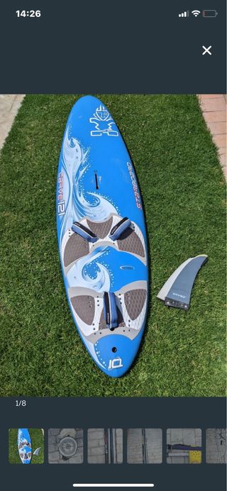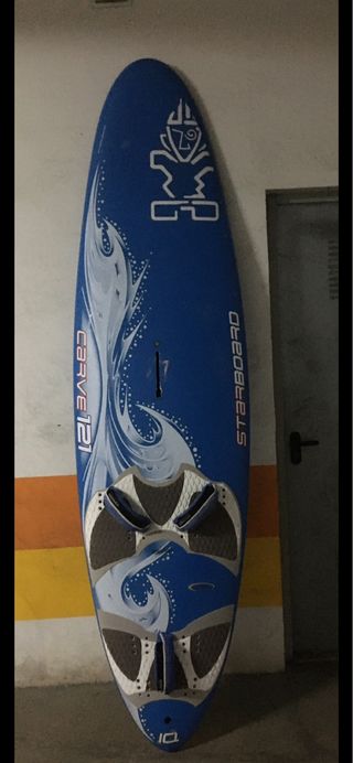 Tabla de windsurf Starboard Carve 121 en color azul. Puedo entregarla en Sevilla y Sanlúcar de Barrameda - Diseño con gráfico de olas y figura tribal. - incluye aleta. - Marca: Starboard - Modelo: Carve 121