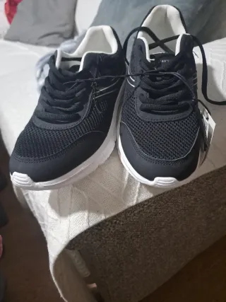 Zapatillas deportivas para mujer en color negro. Perfectas para el día a día. - Diseño moderno y cómodo. - Material transpirable. - Suela blanca.